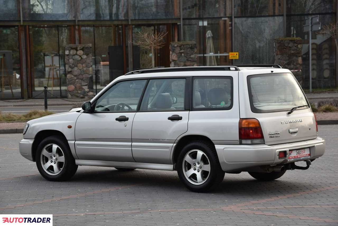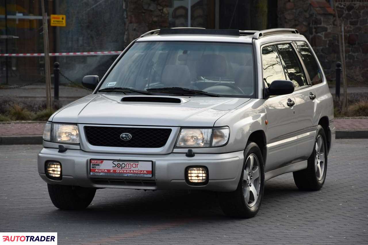 Sprzedam, Subaru Forester S Turbo 2.0T 170KM AUTOMAT z 1999r. Sprowadzony ze Szwajcarii w 2019r., jeden właściciel w kraju. Przebieg 228tys. km w pełni udokumentowany posiadam książkę serwisową oraz wydruk z przeglądów potwierdzający jego autentyczność. Zachowany w idealnym stanie BEZWYPADKOWY z zadbaną powłoką lakierniczą, od spodu wygląda jak dobrze zachowane max 5-cio letnie auto zero korozji i innych uszkodzeń. Mechanicznie bez zastrzeżeń w pełni sprawny egzemplarz. Wszystko sprawne elektryka, klima. Alufelgi 16" z ładnymi oponami letnimi. Wnętrze adekwatnie do przebiegu, czyste i bardzo zadbane. Bogata wersja wyposażenia m.in.: skórzana tapicerka; podgrzewane fotele; skórzana kierownica; klimatyzacja; 4x el. szyby; el. lusterka; el. szyberdach, radio CD i wiele innych. Posiadam oczywiście pełną dokumentację i komplet kluczyków. Polecam ten egzemplarz gdyż takich aut na rynku już nie ma i nie przybędzie i tylko łapią na wartości. Zapraszam do zakupu, POLECAM!!!